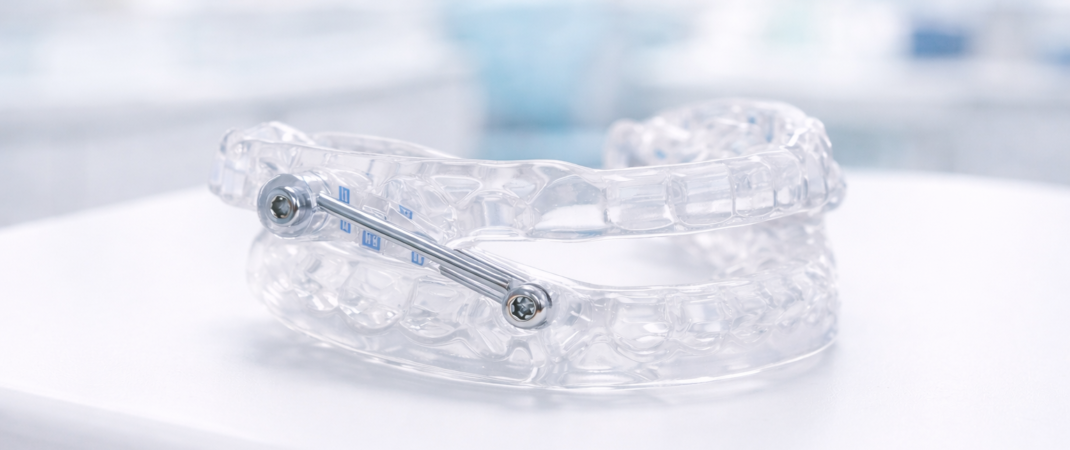 Schnarchschienen sind individuell angepasste Mundstücke, die den Unterkiefer leicht nach vorne verlagern. Dadurch bleibt der Atemweg offen, und die Zunge kann nicht nach hinten rutschen. Sie werden sowohl zur Behandlung von einfachem Schnarchen als auch bei leichter bis mittelschwerer obstruktiver Schlafapnoe (OSA) eingesetzt.